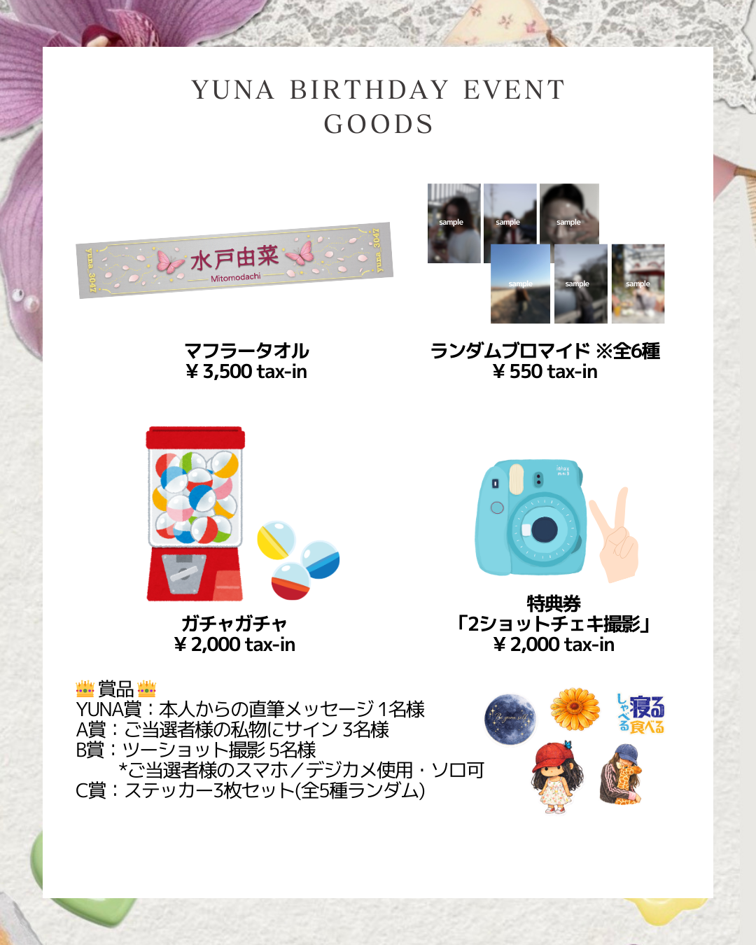 4/5(日)、東京・原宿ストロボカフェにて開催するファンクラブ会員限定『YUNA BIRTHDAY EVENT🎂』のグッズを公開いたしました!